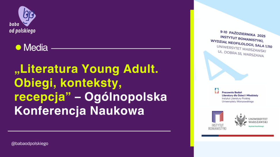 Już w październiku wystąpię na ogólnopolskiej konferencji naukowej „Literatura Young Adult. Obiegi, konteksty, recepcja”, organizowanej przez Pracownię Badań Literatury dla Dzieci i Młodzieży Instytutu Literatury Polskiej UW oraz Instytut Romanistyki UW.