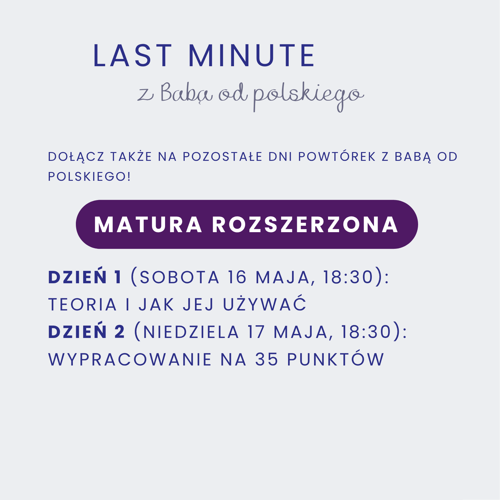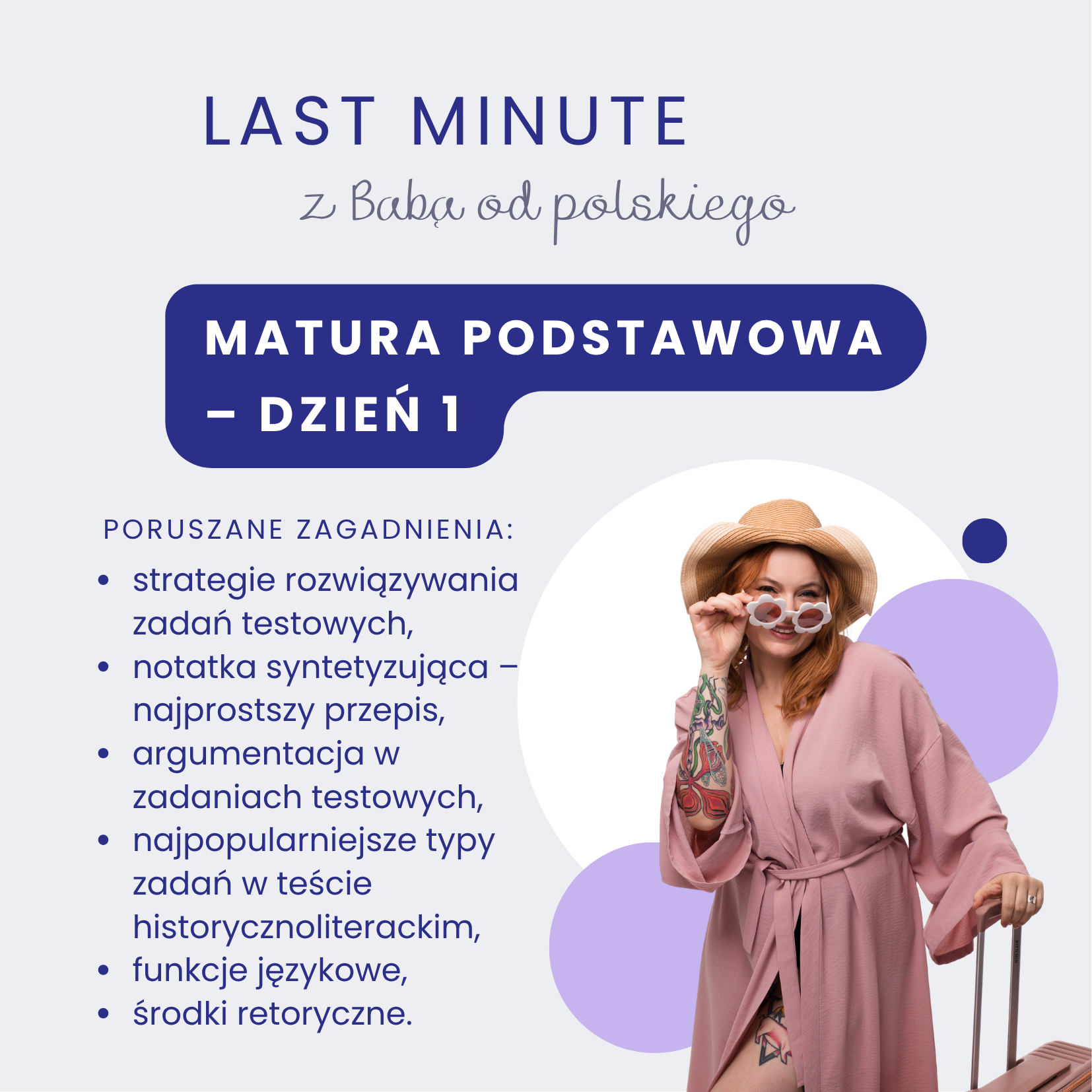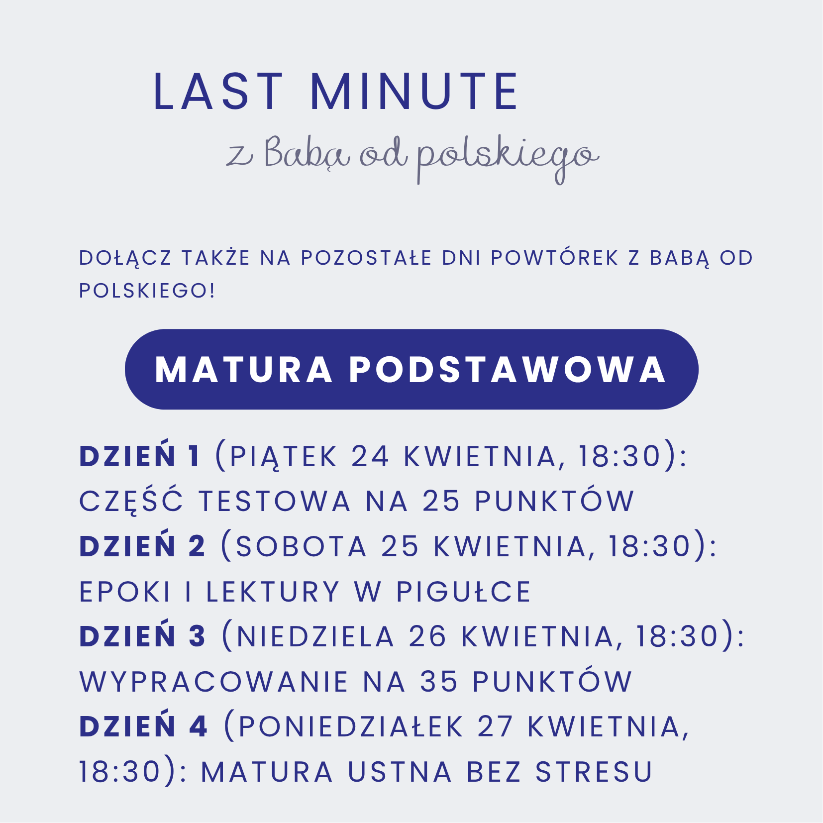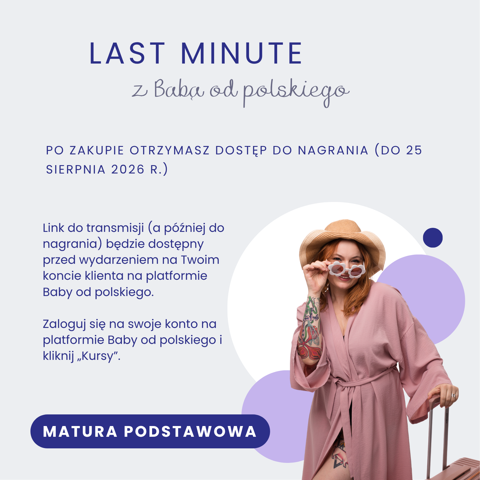 Bilet na LAST MINUTE z Babą od polskiego – matura podstawowa, dzień 3: wypracowanie na 35 punktów (26 kwietnia 2026 r.)