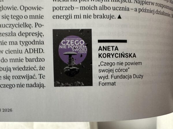 Ta rozmowa wydarzyła się dzięki mojemu debiutowi poetyckiego, a więc wierszom z tomu „Czego nie powiem swojej córce” wydanego przez Fundację Duży Format. Kilka z tych tekstów poświęciłam zwierzętom, ale tak naprawdę wszystkie są o uczeniu się mądrej miłości.