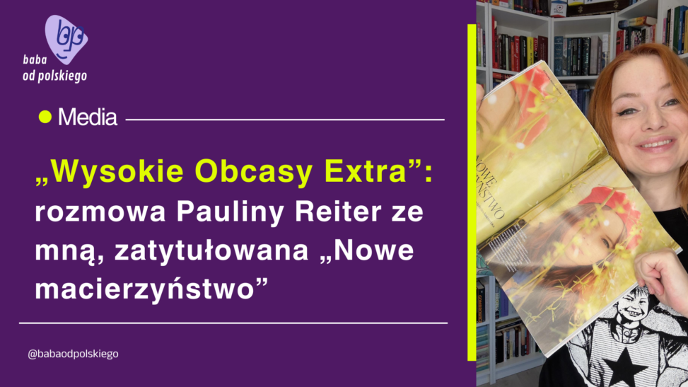 Ukazały się właśnie „Wysokie Obcasy Extra”, a w części poświęconej kulturze znalazła się rozmowa Pauliny Reiter, ze mną, zatytułowana „Nowe macierzyństwo”. To dla mnie ważny wywiad, bo powiedziałam w nim szczerze o sprawach, które nie zawsze łatwo wypowiedzieć.