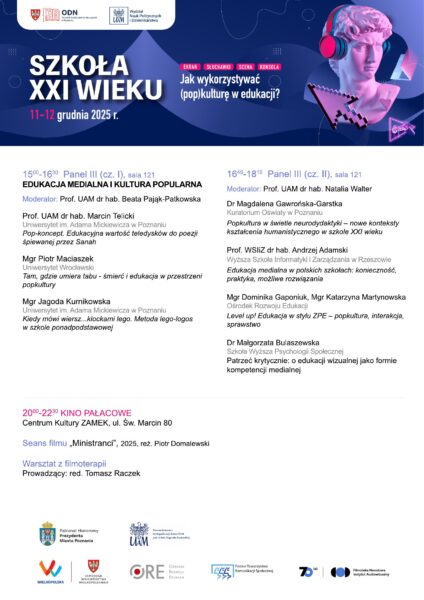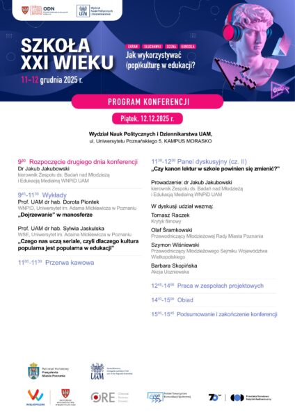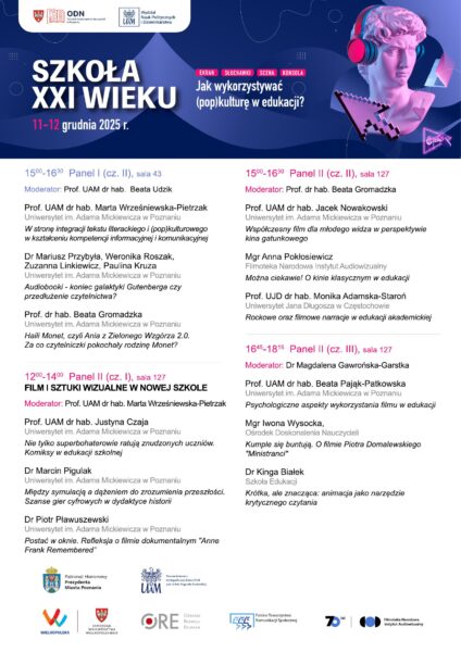 W programie znalazły się wystąpienia dotyczące filmu, gier, seriali, edukacji medialnej, neurodydaktyki i praktyk wizualnych. Dyskusje będą dotyczyć m.in. kanonu lektur, nowych form pracy z tekstem i roli kultury cyfrowej w kształtowaniu młodego odbiorcy. Mój referat jest częścią tej większej rozmowy o tym, jak szkoła XXI wieku może odpowiadać na wyzwania współczesności i jak budować edukację, która rozwija rozumienie świata, a nie tylko przekazuje informacje.